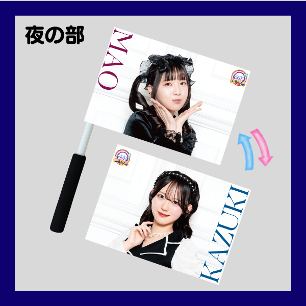 こちらは『夜公演の特典付きスペシャルチケット』につく『スペシャル応援グッズ』と同一商品です。昼公演と夜公演で絵柄が異なります。